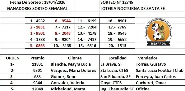 Ganadores del Sábado 18 de Abril 2026
