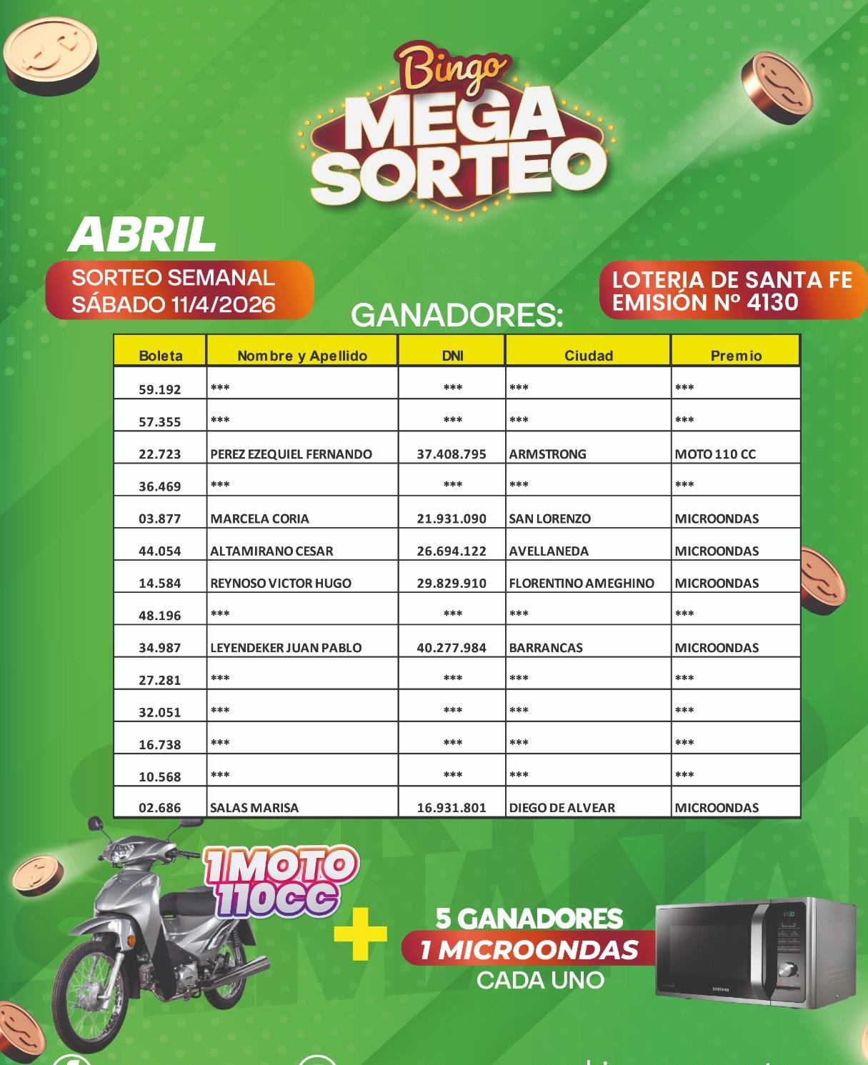 Pedí info completa del Nuevo Bingo Mega Sorteo Las Parejas al 3426114042